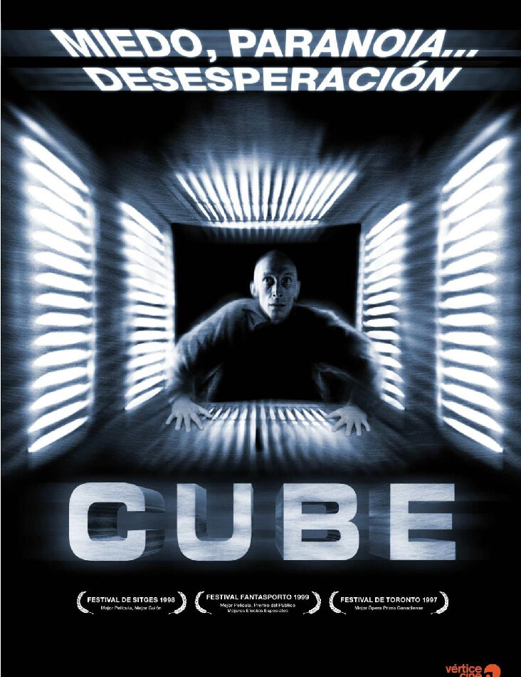 About Cube (1997)Cube (1997): Después de que un hombre llamado Alderson muere en una misteriosa habitación en forma de cubo, cinco extraños: Quentin, Worth, Holloway, Leaven y Rennes, se despiertan y se encuentran en otra habitación idéntica.